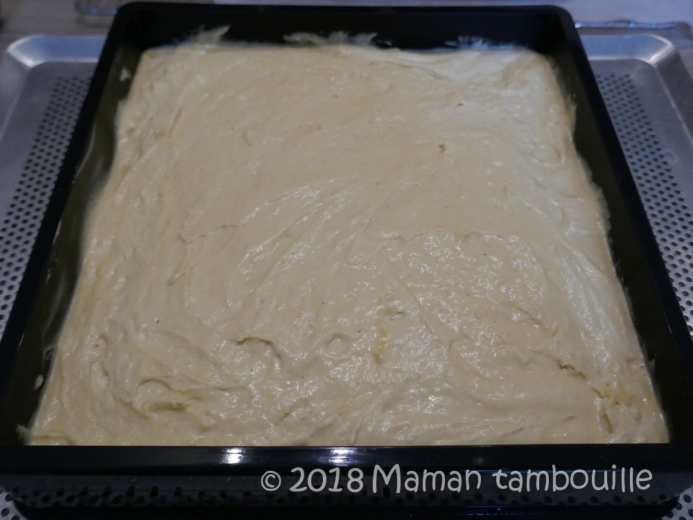 Verser dans un moule silicone carré 22x22cm. (Guy Demarle pour moi).