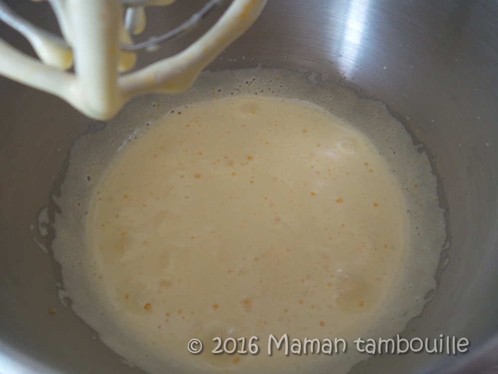 Fouetter au batteur jusqu’à ce que ça double de volume et devienne mousseux.