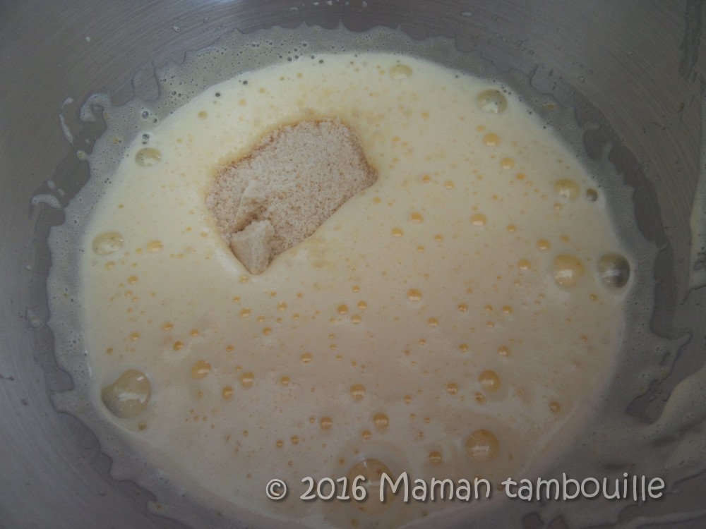 Bien fouetter puis ajouter le beurre fondu.