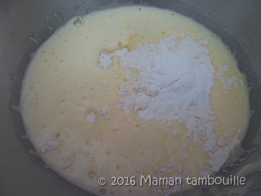 Puis la farine et la levure.
