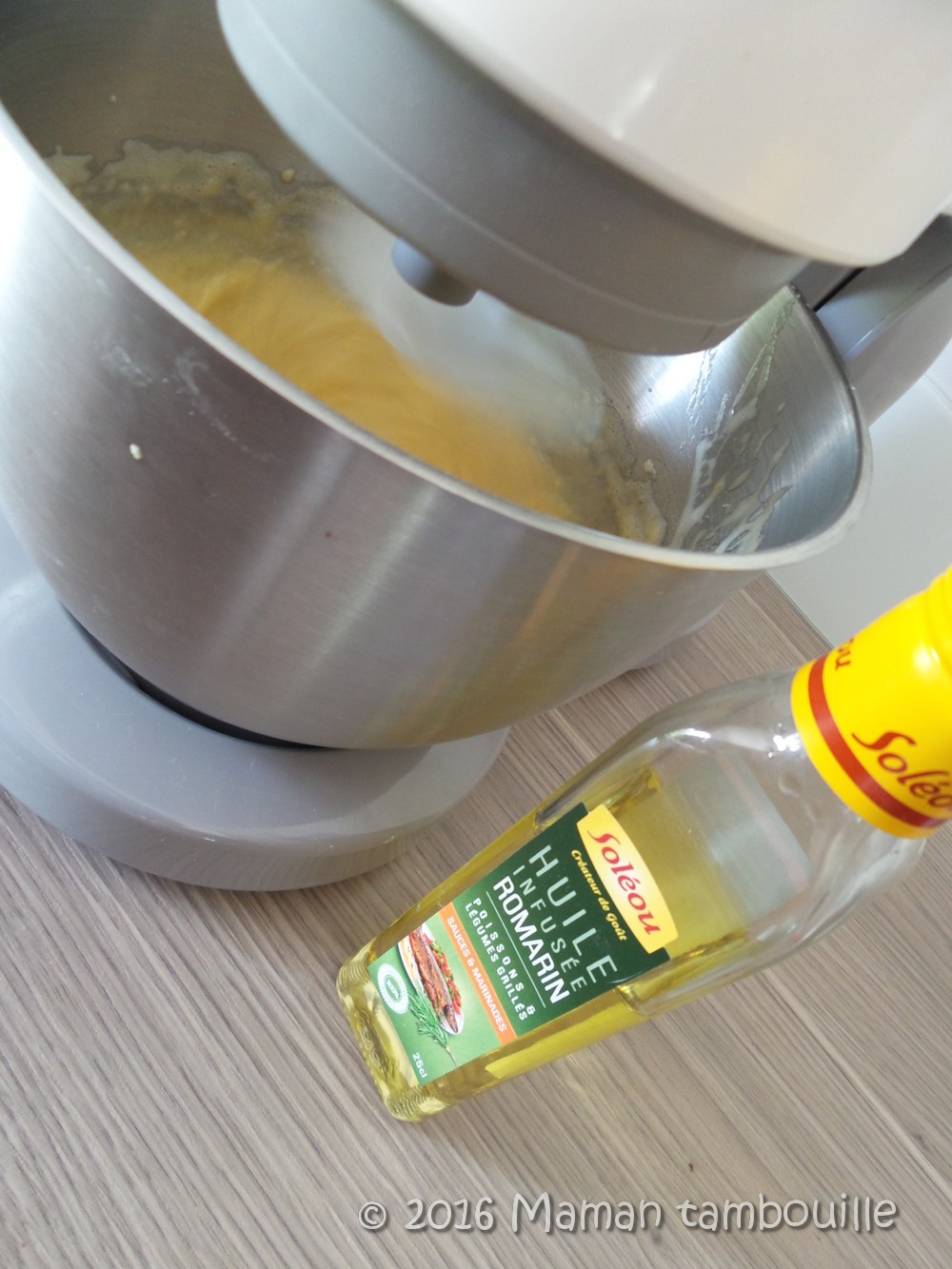 • 75g d’huile au romarin (l’huile infusée au romarin Soléou reçue dans la dernière degustabox). Si vous n’avez pas d’huile au romarin, chauffer de l’huile d’olive (ou de colza pour un goût moins corsé) dans une casserole. Hors du feu, ajouter 2 belles branches de romarin frais. Couvrir et laisser infuser 30min. Jeter le romarin et filtrer l’huile si besoin.