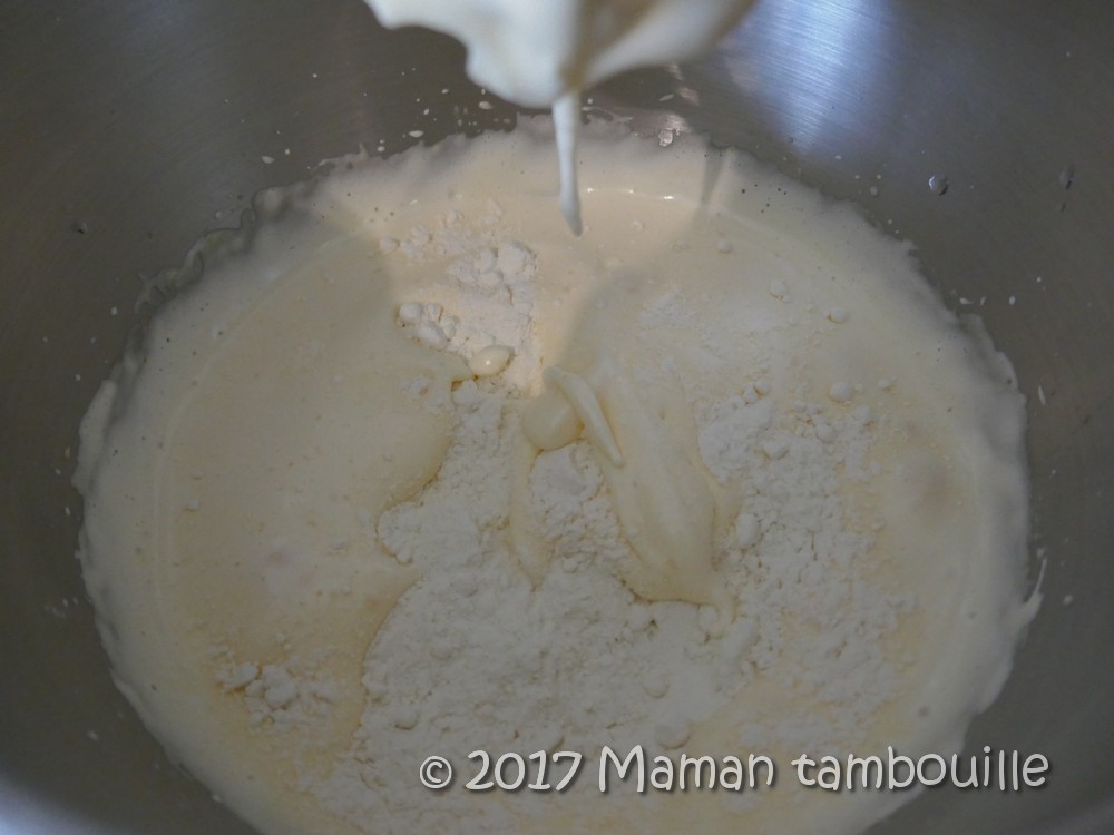 Ajouter la farine et fouetter à nouveau juste le temps que la farine soit incorporée.
