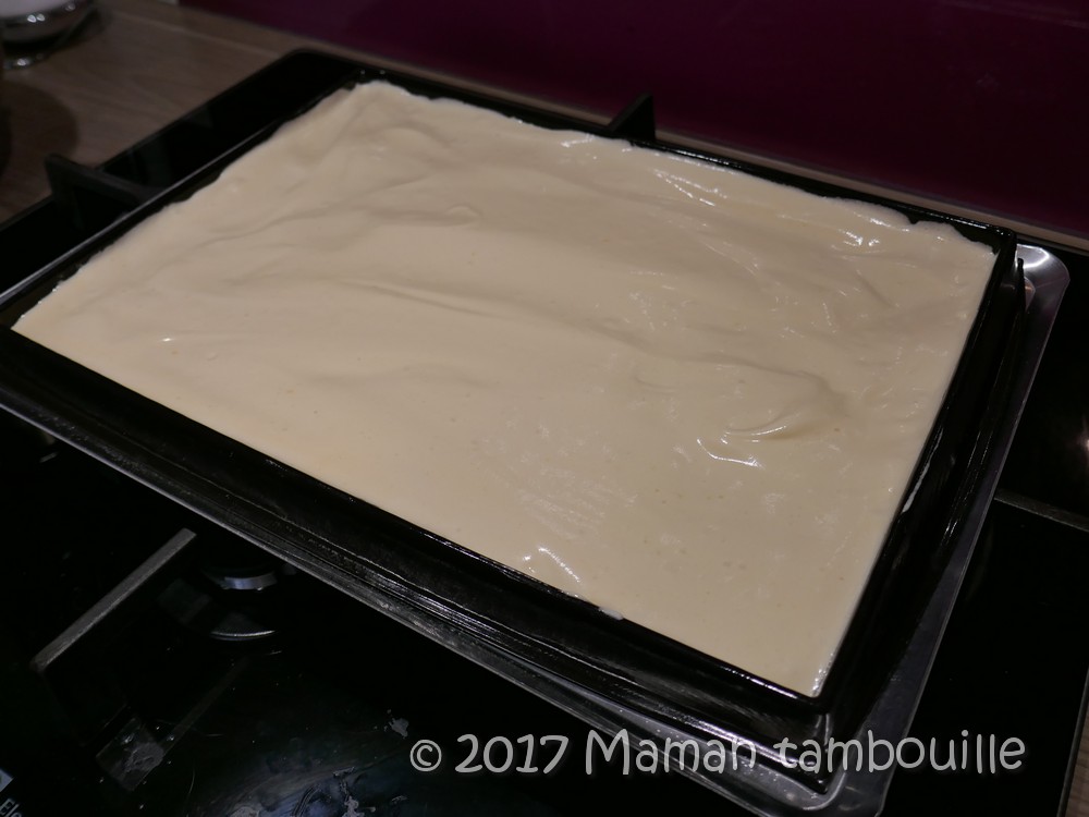 Poser le moule flexipan sur la plaque perforée et verser le mélange. Etaler sur toute la surface et lissée pour avoir une épaisseur régulière.
