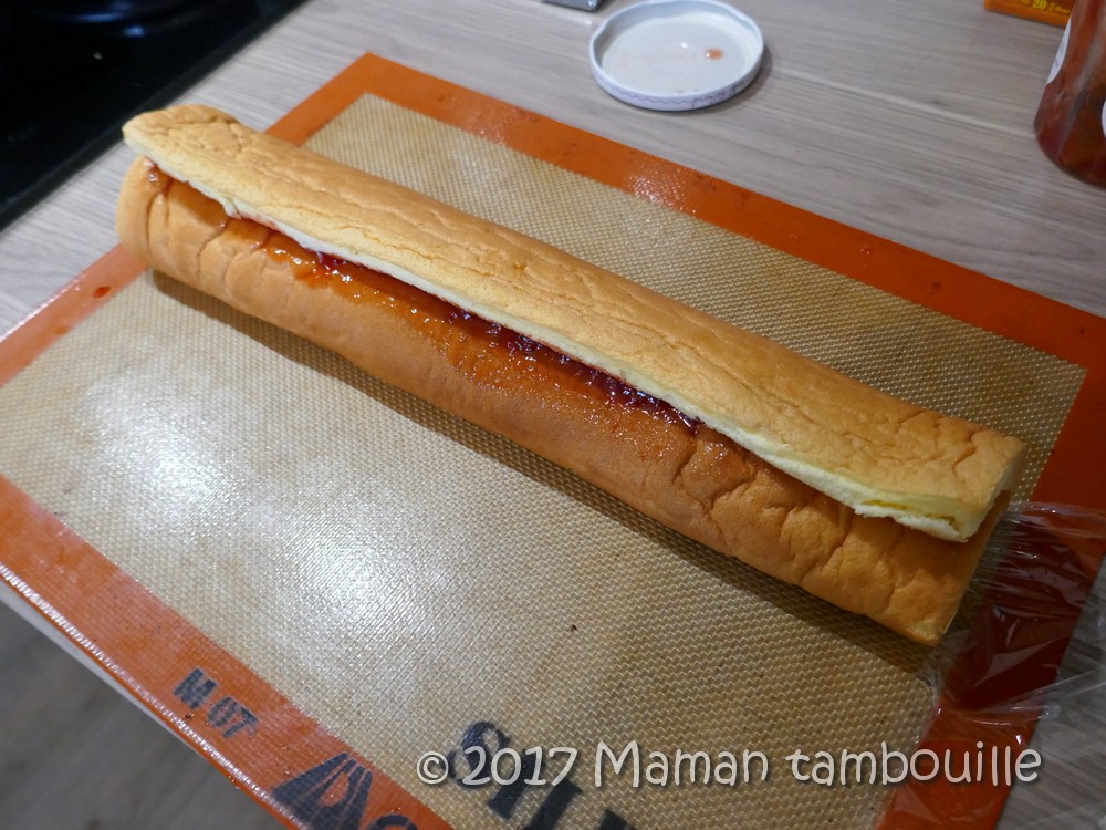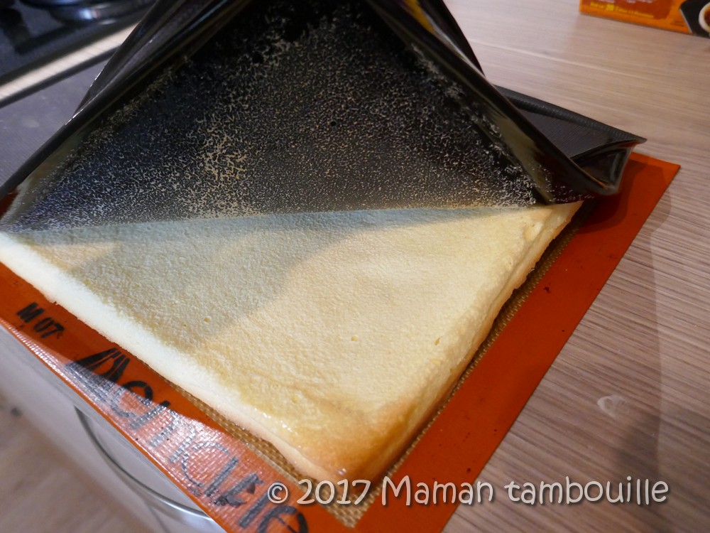 Rouler le gâteau à l’aide de la silpat (à défaut un film étirable).