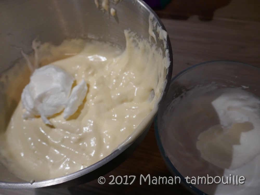 Ajouter le reste des blancs et incorporer délicatement avec une spatule.