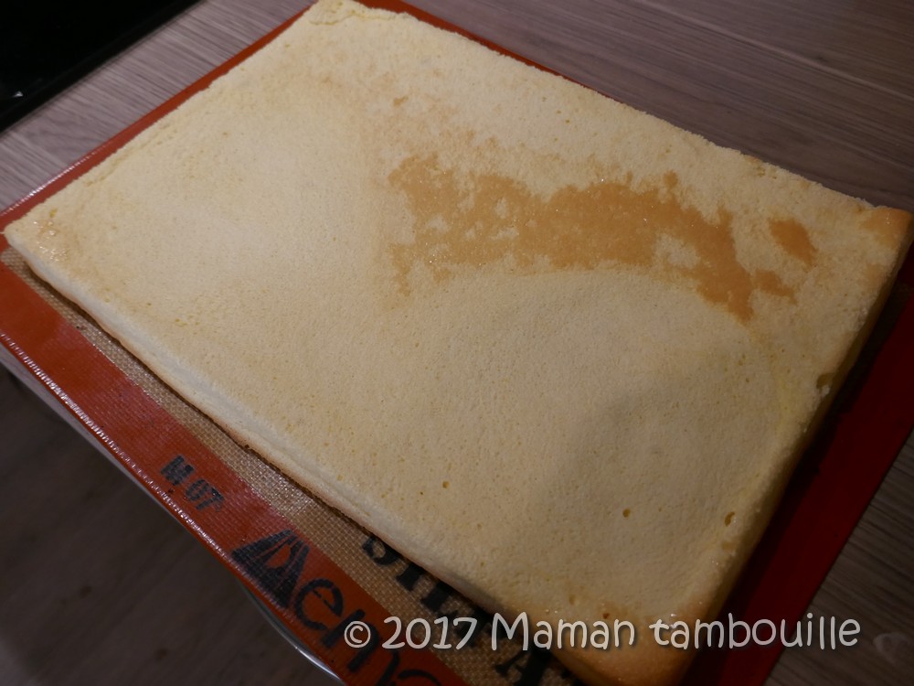 Rouler le gâteau à l’aide de la silpat (à défaut un film étirable).