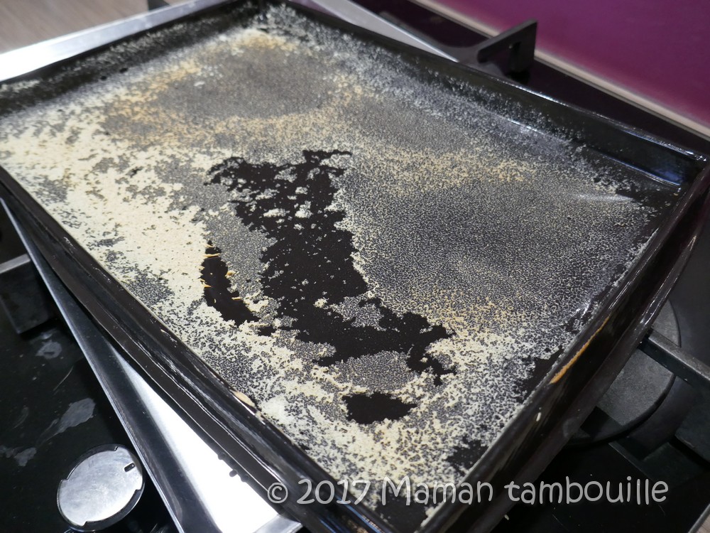 Poser le moule flexipan sur la plaque perforée et verser le mélange. Etaler sur toute la surface et lissée pour avoir une épaisseur régulière.