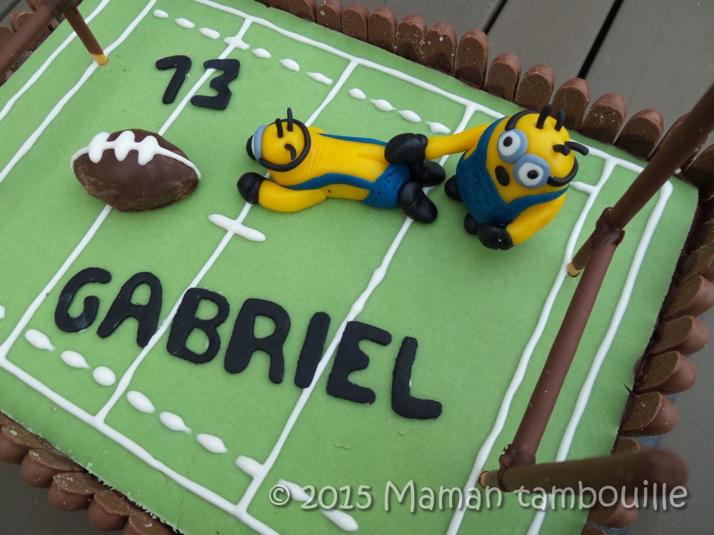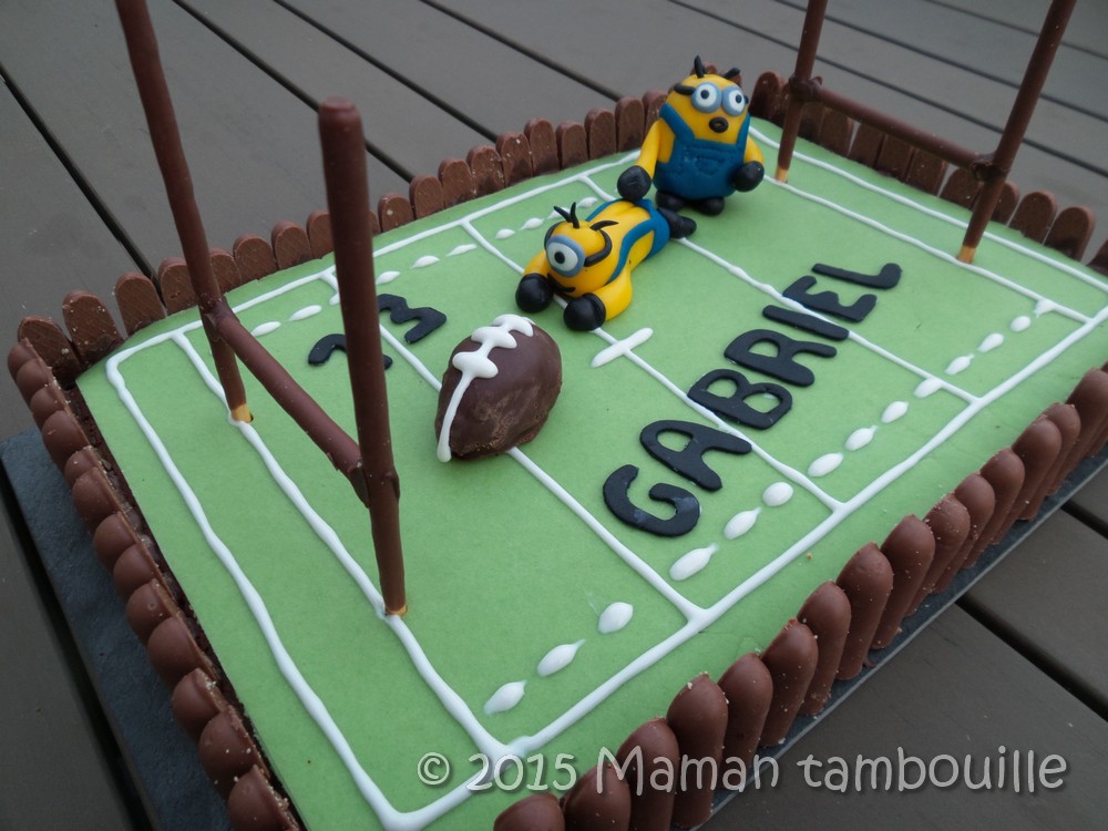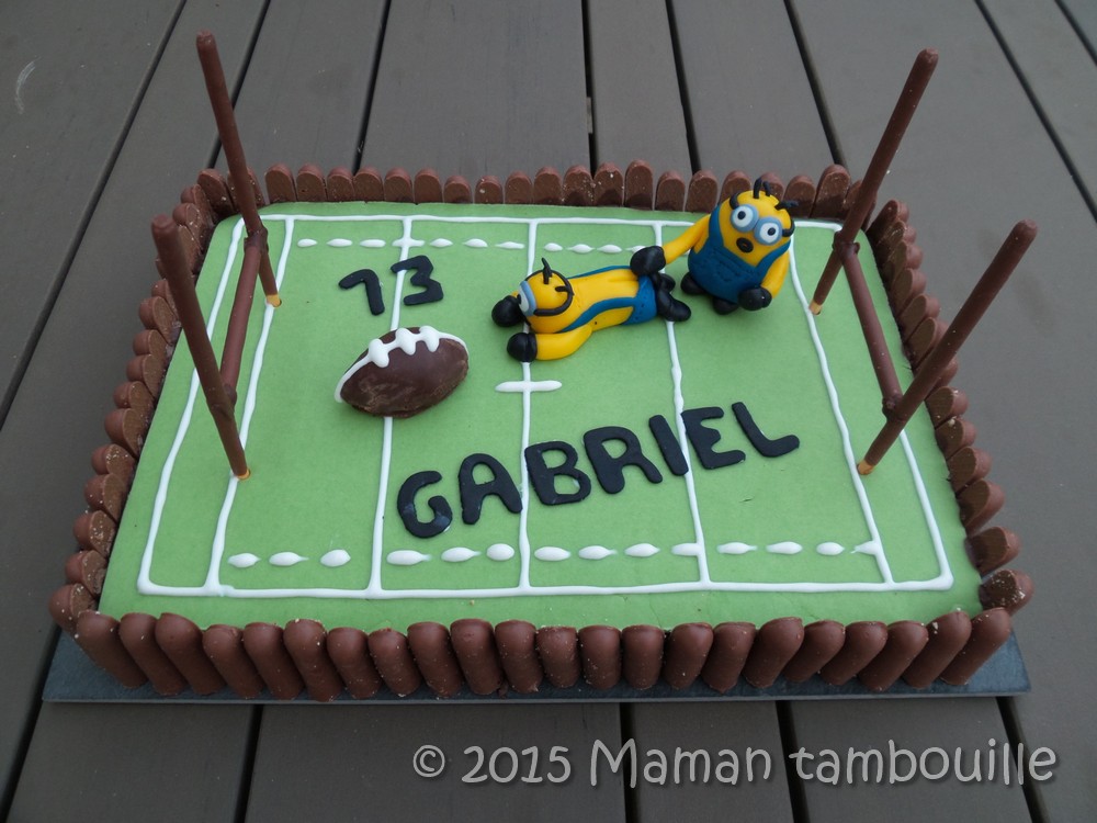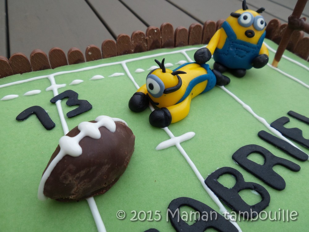 Voici le gâteau que j’ai réalisé pour les 13 ans de mon cousin. Il aime le rugby, j’aime les minions, alors c’est parti pour des minions sur un terrain de rugby.