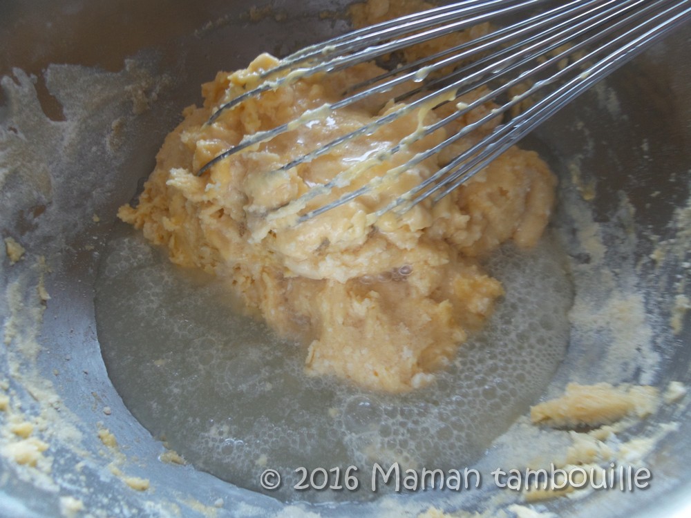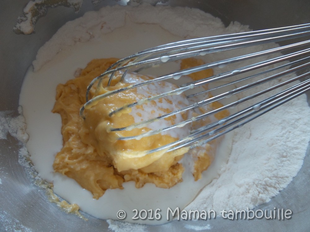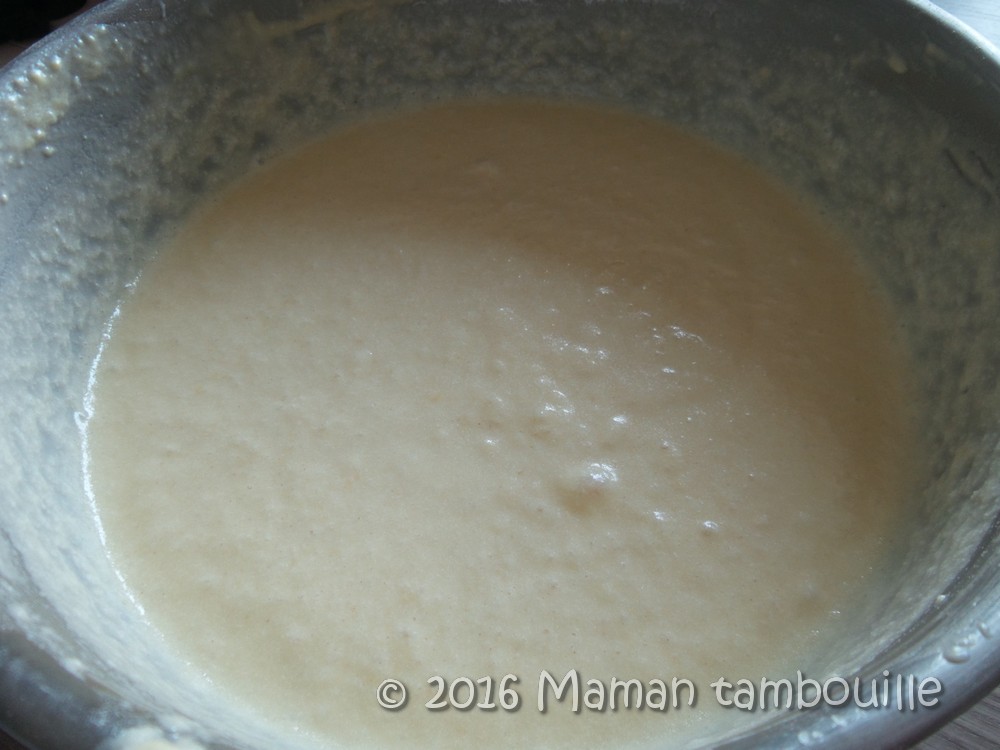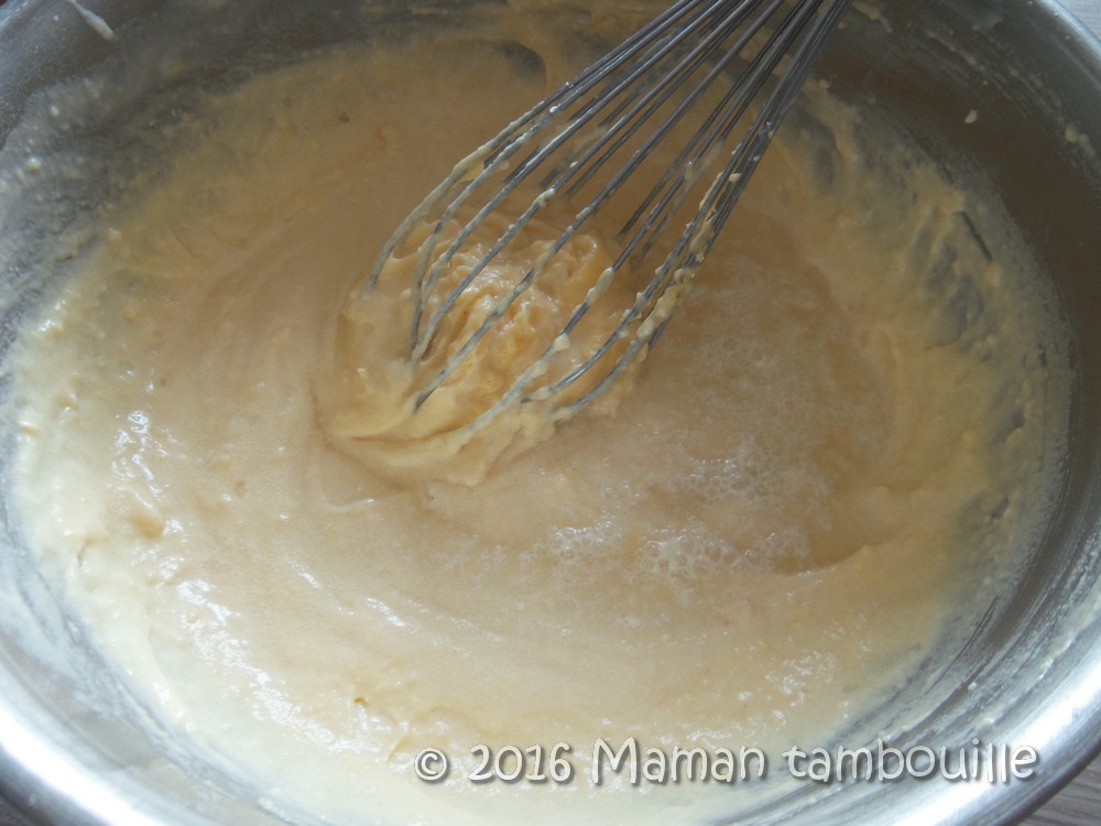 Mélanger au fouet en évitant les grumeaux puis ajouter le beurre fondu.
