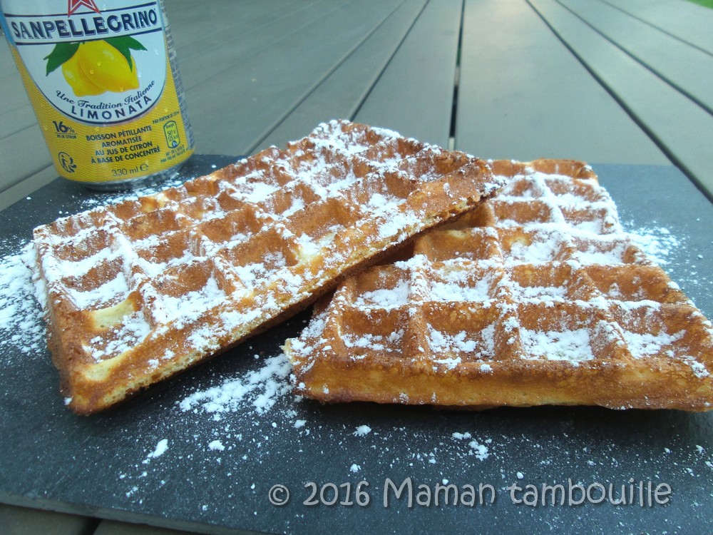 Un peu tour sur le net et je me suis arrêtée sur cette recette de gaufre sans lait mais avec de la limonade (et un peu de crème liquide). 5min pour faire la pâte, pas de temps de repos et hop, voilà de jolies gaufres croustillantes qui ont beaucoup plu.