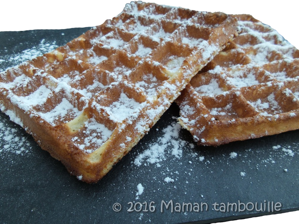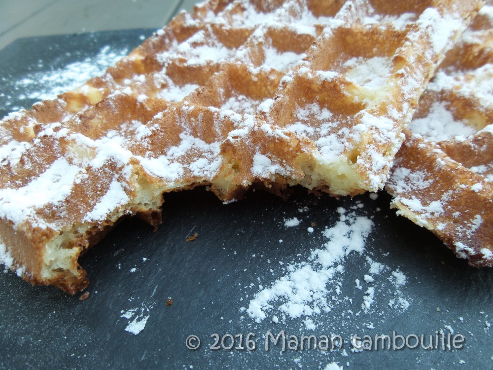 Clin d’œil à Cat : mon grand a tout de même préféré les gaufres « traditionnelles » comme il les appelle, c’est-à-dire ta recette avec de l’eau gazeuse 😉
