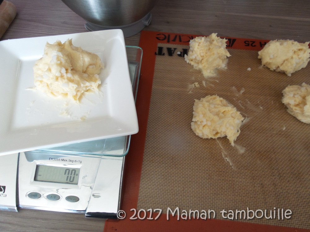 Prélever des portions de pâte de 70g et les déposer sur une plaque.