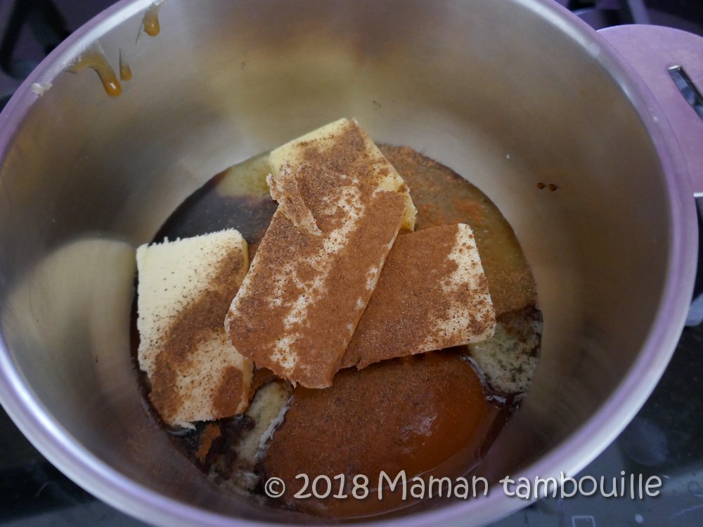 Dans une casserole, chauffer doucement le beurre, le miel et les épices.