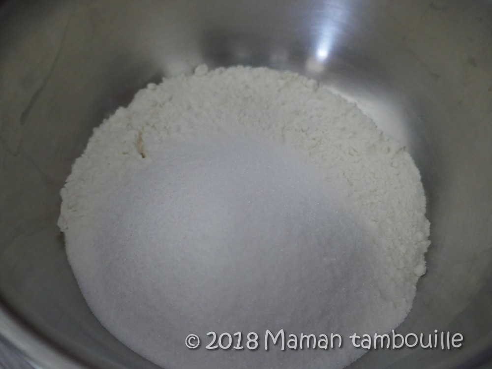 Dans un saladier, mélanger la farine et le sucre.