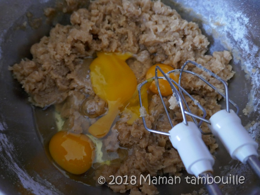 Ajouter les 3 oeufs et fouetter à nouveau.