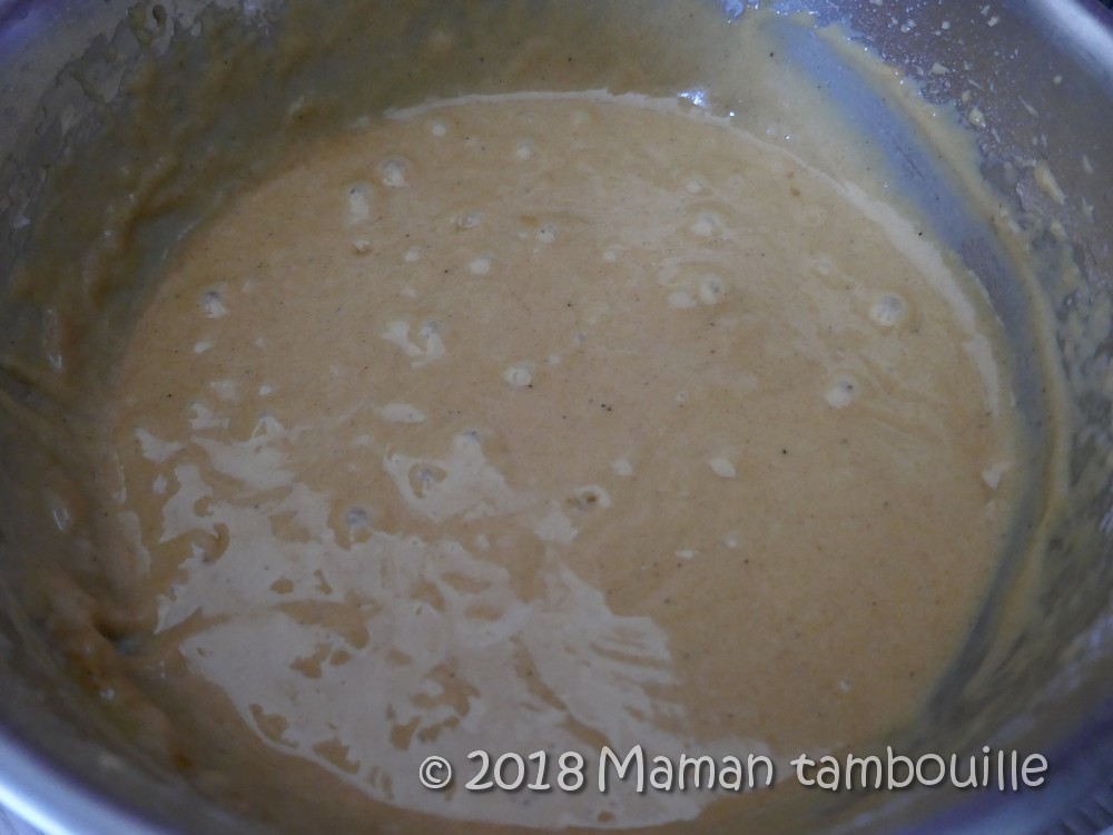 Quand le beurre est fondu, verser dans la farine et fouetter au batteur.