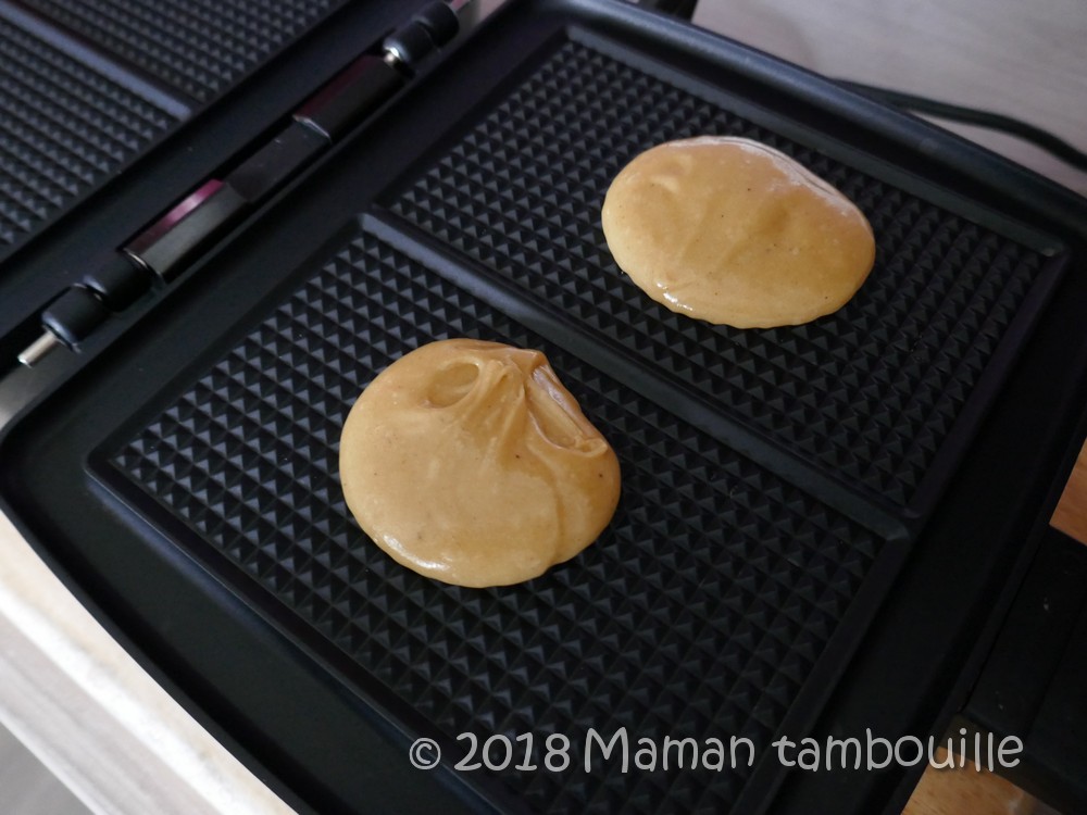 Déposer une cuillère à soupe de pâte sur chaque empreinte et fermer.