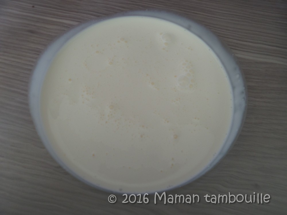 Ajouter le lait concentré sucré bien froid.