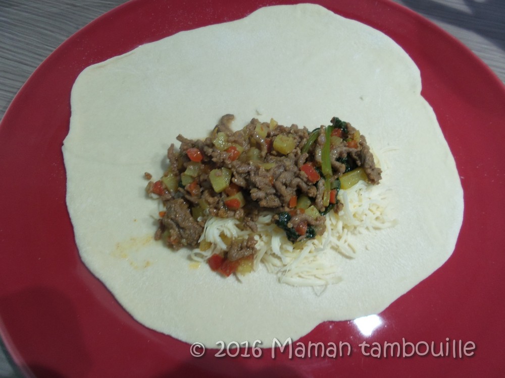 Voilà le type de plat qui plaît toujours à ma tribu ! Je n’avais jamais tenté de faire des gozlem, de petites « crêpes » turques farcies. Moi, je les ai garnies d’une préparation de bœuf aux légumes et de fromage râpé.