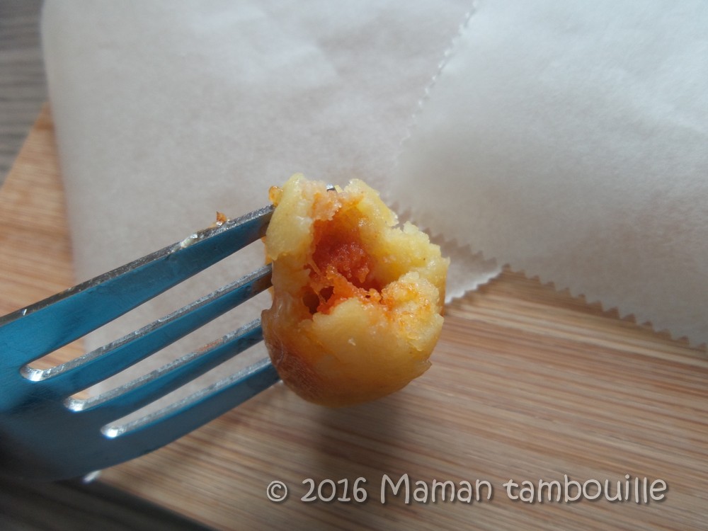 La préparation maintenant. Bon, je m’attendais à voir des jolies petites boules bien rondes comme sur la photo du paquet mais en fait ce sont plutôt des gnocchi allongés. Pas de soucis, ronds ou allongés, ça ne change rien au goût et puis ils sont jolis aussi comme ça.