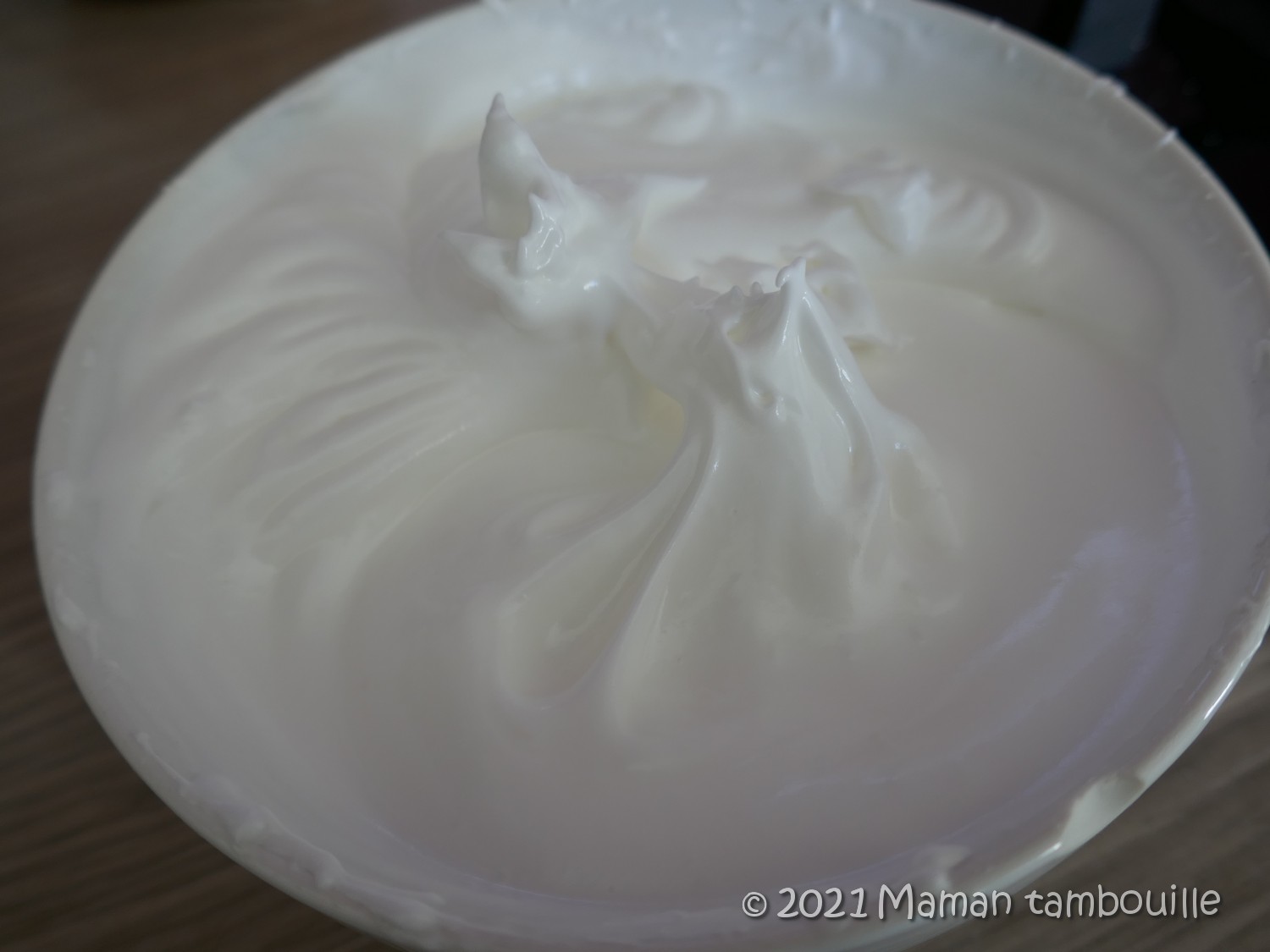 Ajouter la meringue et fouetter à nouveau pour bien incorporer le tout.