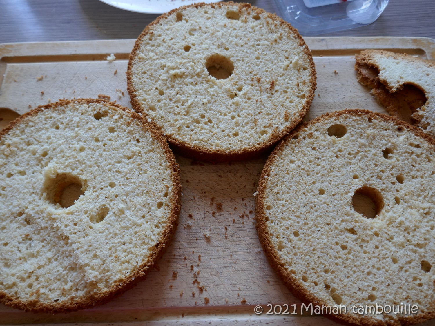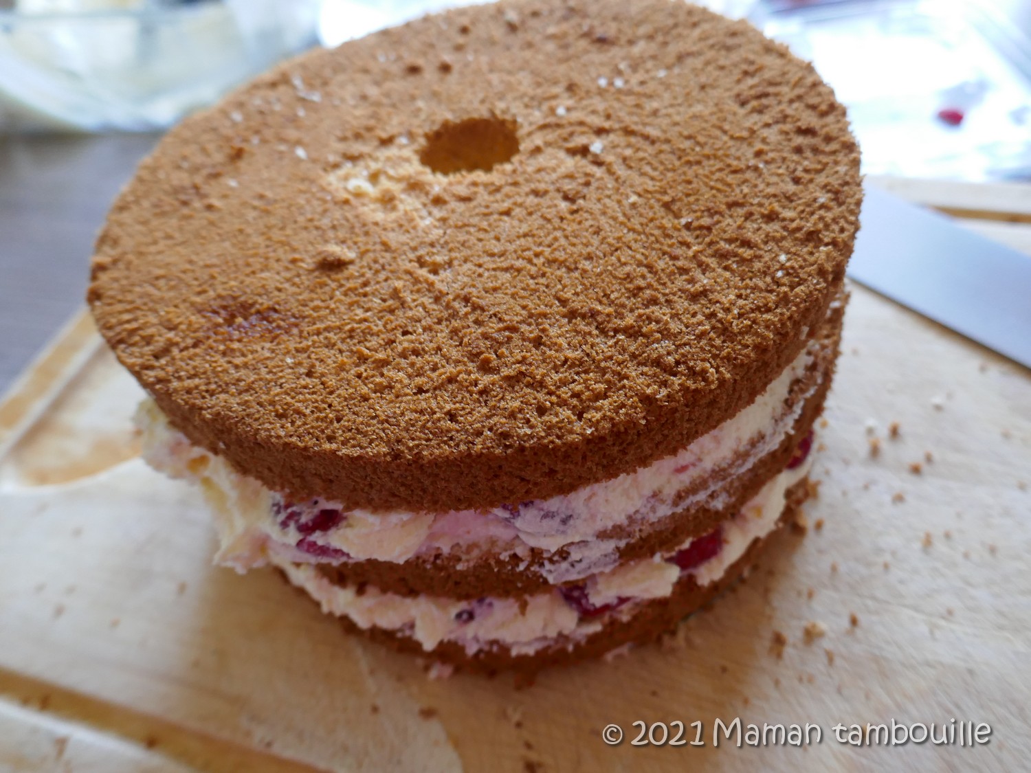 Couper le chiffon cake en 3 couches régulières.