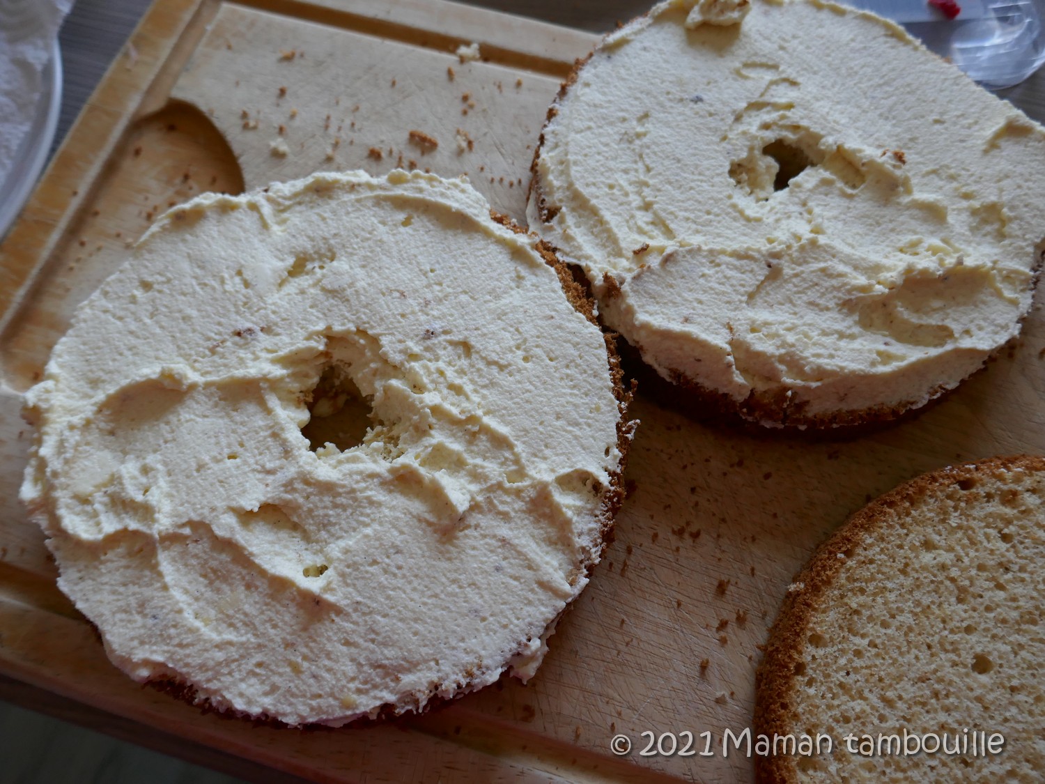 Etaler une couche de crème sur 2 disques.