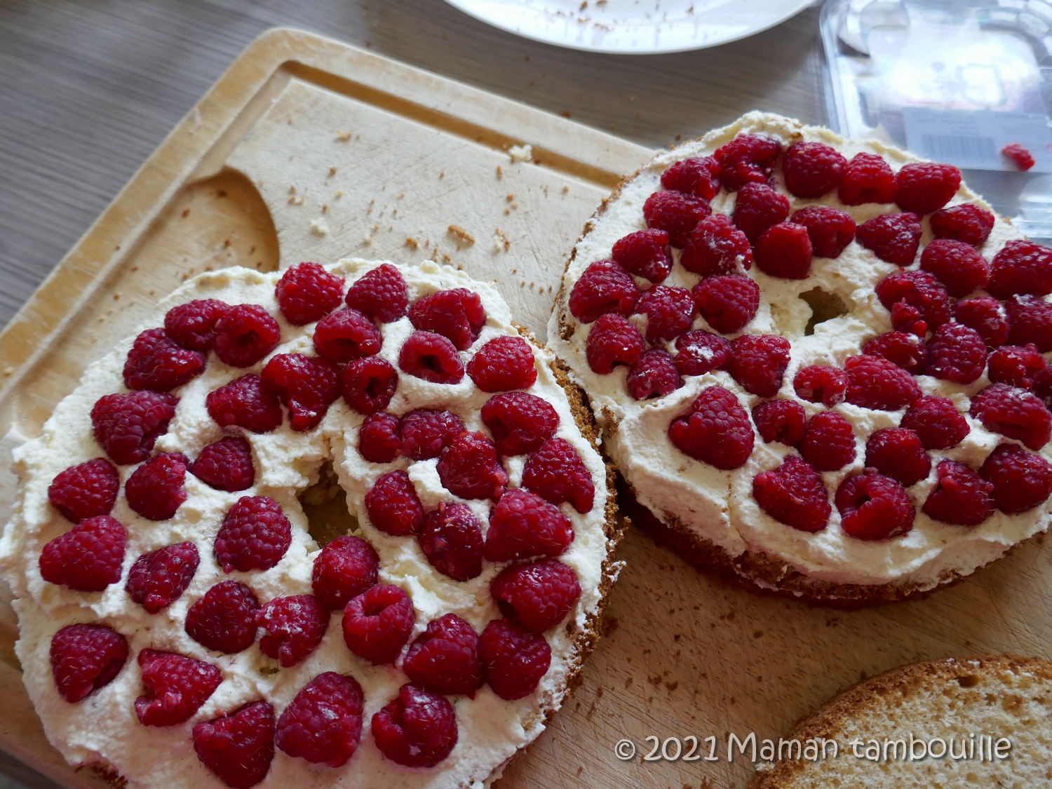 J’ai trouvé ça top avec les framboises, plus naturel, moins sucré. Je vous conseille vraiment les fraîches dans ce cas. Les surgelées vont rendre trop d’eau et détremper le gâteau, ça n’a pas du tout la même tenue que des fraîches.