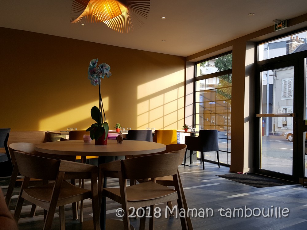 Bref, je vous fais donc découvrir aujourd’hui le nouveau restaurant l’Eléphant rouge ouvert depuis fin juin, et oui, c’est tout récent. Il est situé au 18 avenue Cordelet au Mans, c’est dans le quartier Chasse Royale. J’avais un peu peur que le stationnement soit compliqué dans ce quartier mais, le soir en tout cas, ça ne pose aucune difficulté, on peut se garer quasiment devant le restaurant, il y a beaucoup de place sur la rue, et gratuites en plus (le soir). Pour le midi, je ne sais pas trop mais il y a un grand parking de 400 places gratuites à proximité.