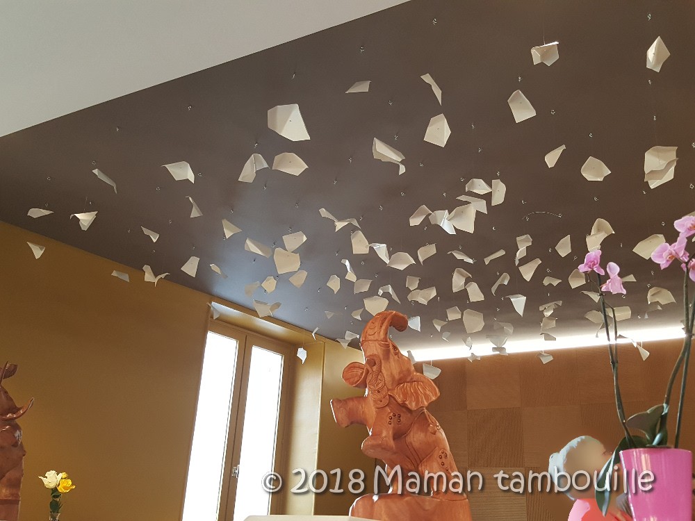 Et bien c’est super joli. C’est sobre et pas bling bling. Il y a plusieurs espaces séparés par 2-3 marches, ce qui donne l’impression de plus d’intimité. J’ai craqué sur les suspensions dans un des espaces. J’ai trouvé ça très original et trop joli, constatez vous même: