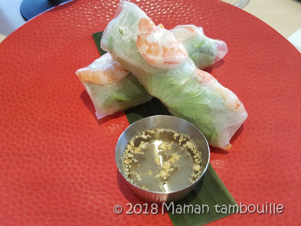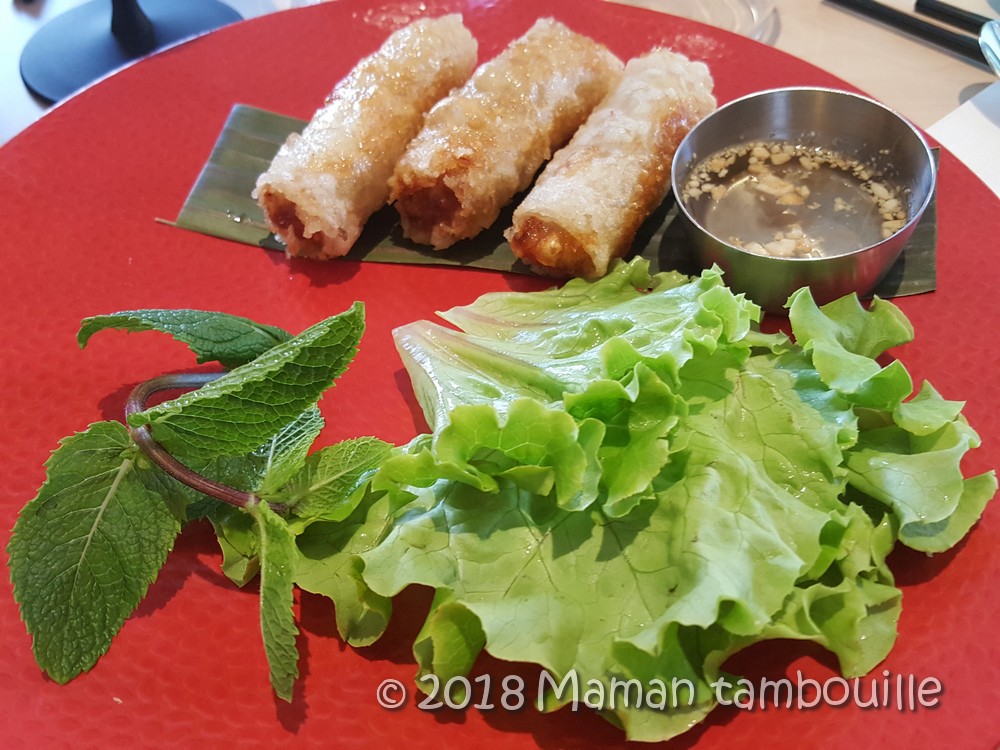 Des nems, pareil c’est un classique mais moi, je ne peux pas résister. Ici, ils sont bien frais aussi avec de belles feuilles de menthe et de salade
