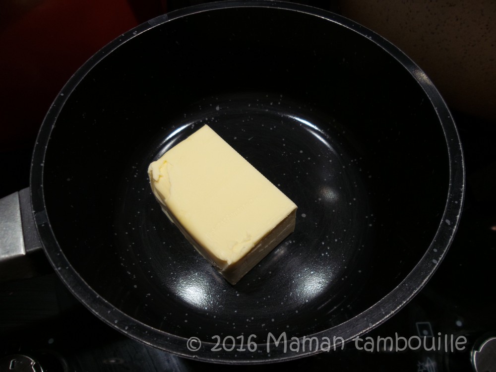 Faire chauffer le beurre dans une casserole. Quand il a pris une belle couleur noisette, le verser dans un bol à travers une passoire. Ajouter le miel et laisser tiédir.
