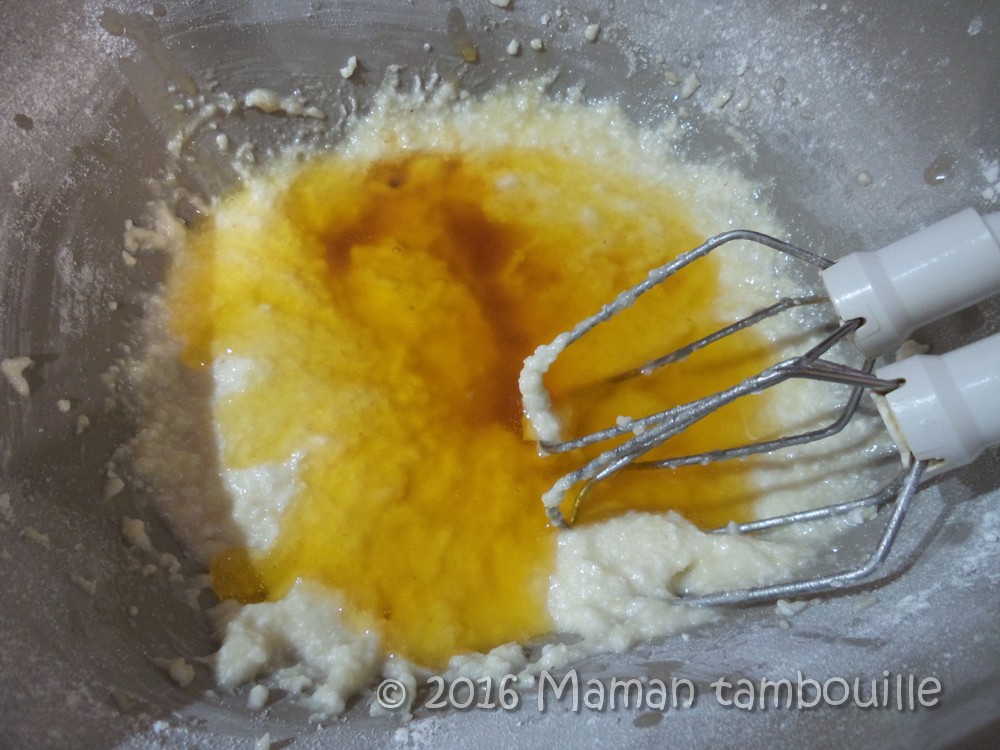 Ajouter le beurre bien tiédi et battre à nouveau.