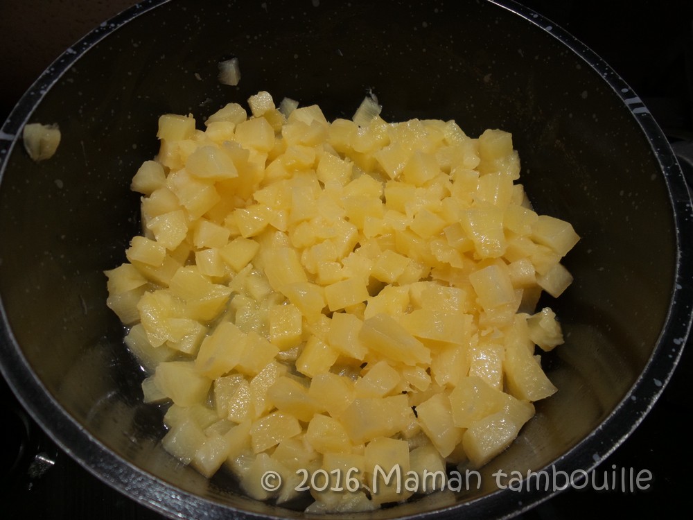 Ajouter le jus de passion puis faire compoter encore 10 min. Réserver dans un bol et laisser refroidir.