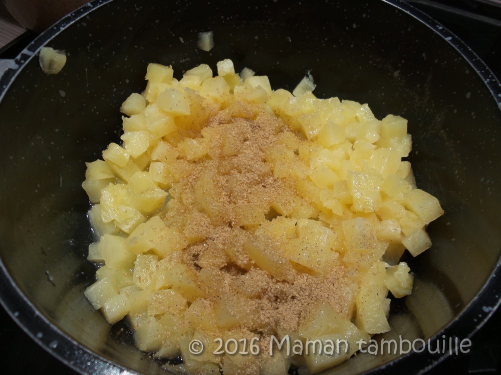 Et le sucre vanillé. Mélanger et laisser cuire à feu doux 10 min.