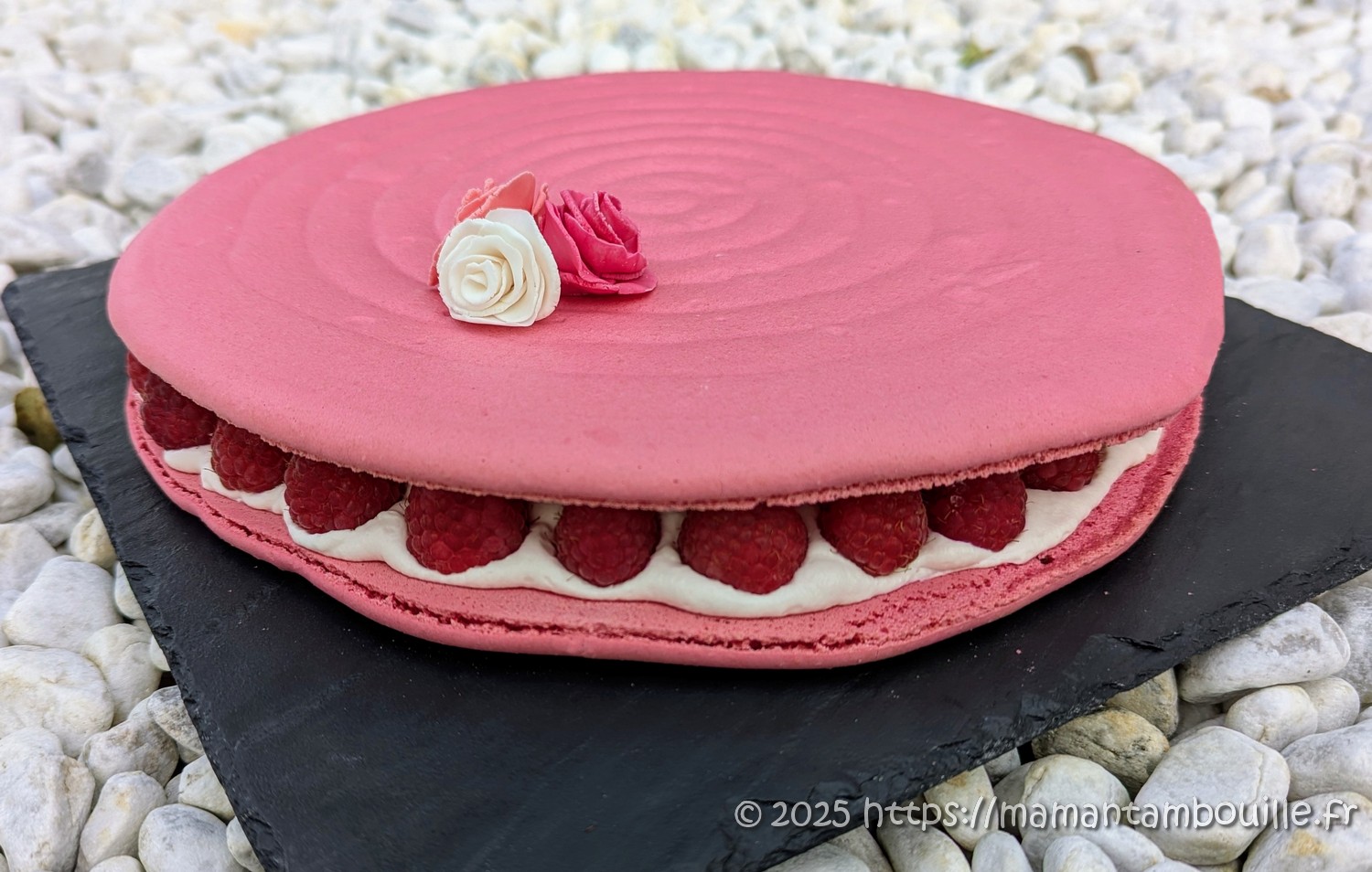 Il peut faire un peu peur à réaliser mais le plus compliqué est le macaron.  Si vous maitrisez la fabrication des macarons, pas de soucis à vous faire, le reste est facile. Sinon, bah, comme dirait Mercotte « Lisez bien la recette » 😉