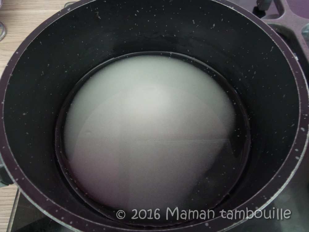 Faire bouillir l’eau et le sucre pendant 5 min. Laisser refroidir.