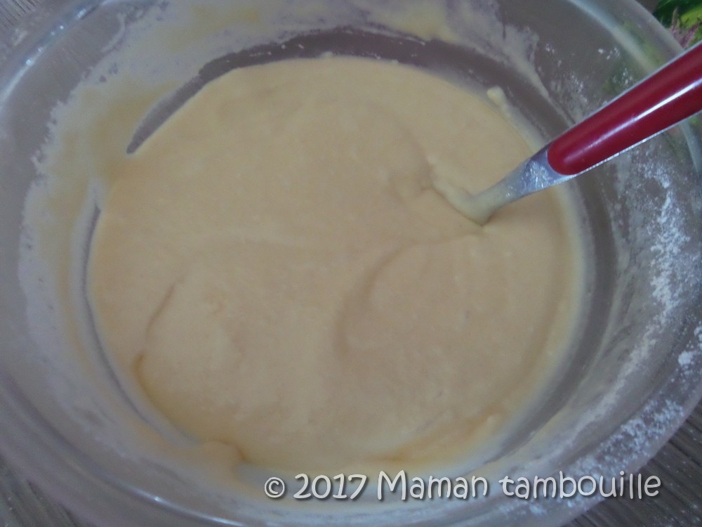 Mélanger avec une cuillère sans excès et arrêter dès que la pâte est homogène.