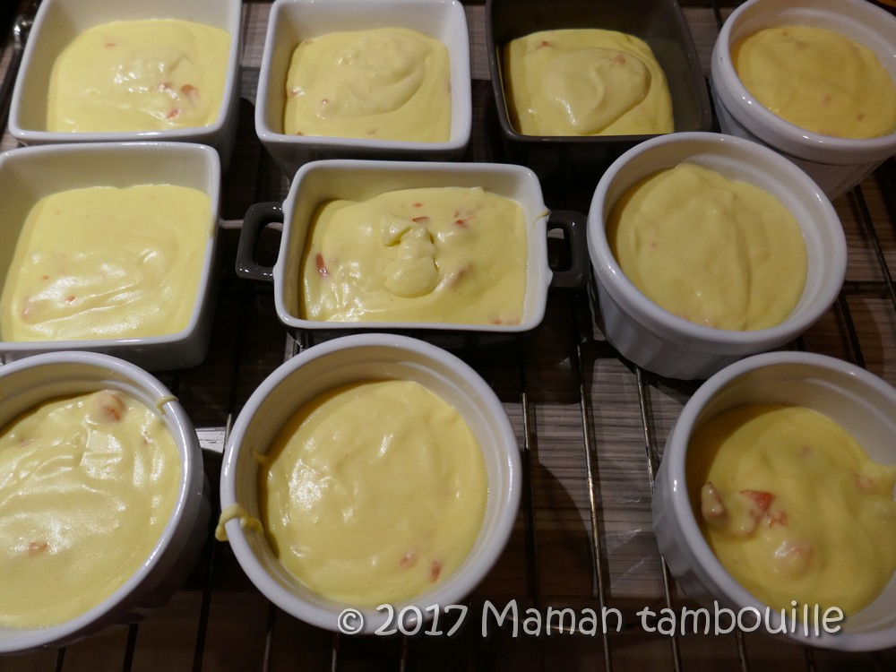 Répartir dans les ramequins et enfourner 25 min à 150°.