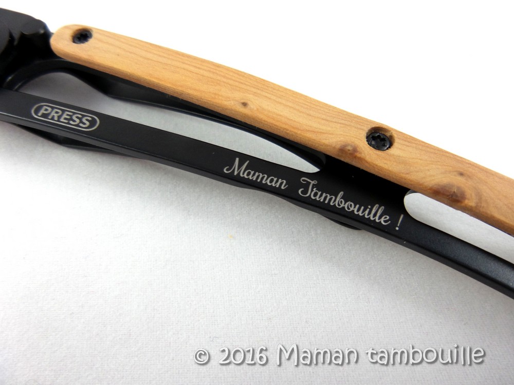 - une inscription sur le manche pour en faire un couteau vraiment unique