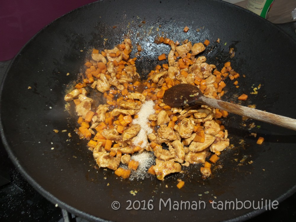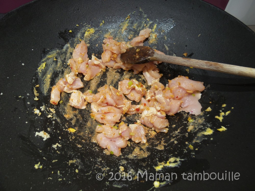 Ajouter le poulet et le saisir en mélangeant.