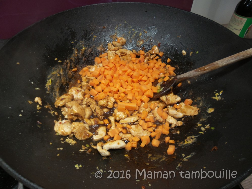 Ajouter les petits dés de carottes et saisir 5 min.