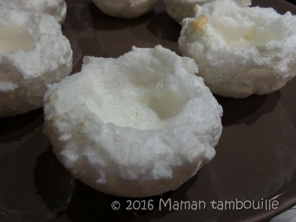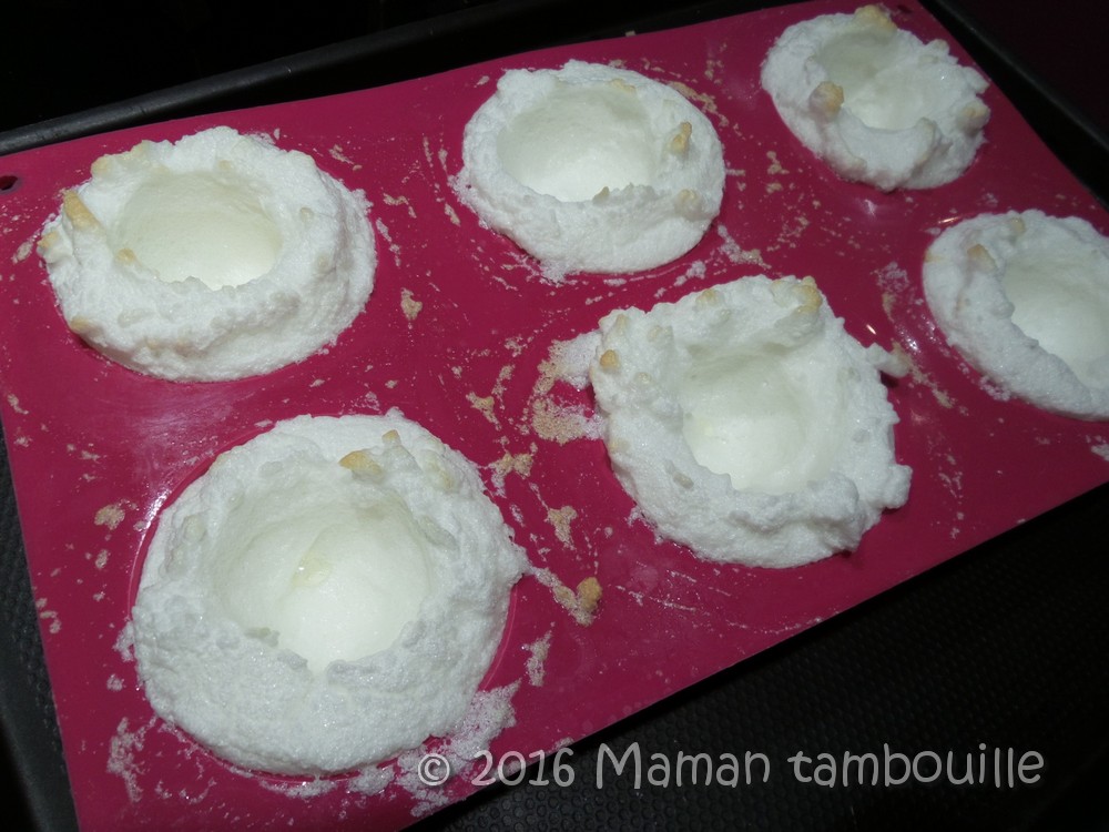 Remplir les moules dômes en silicone (légèrement huilés avec un essuie tout) de blancs en neige.