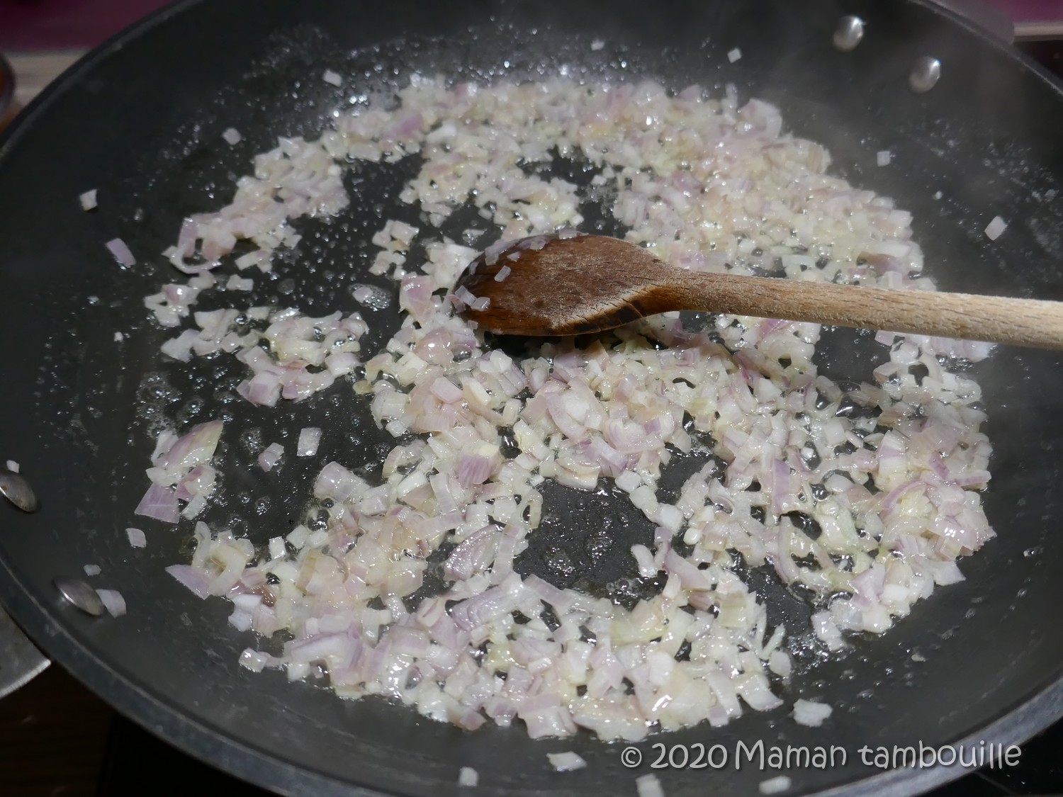 Faire fondre 20g de beurre. Y faire fondre sans coloration des échalotes finement émincées.