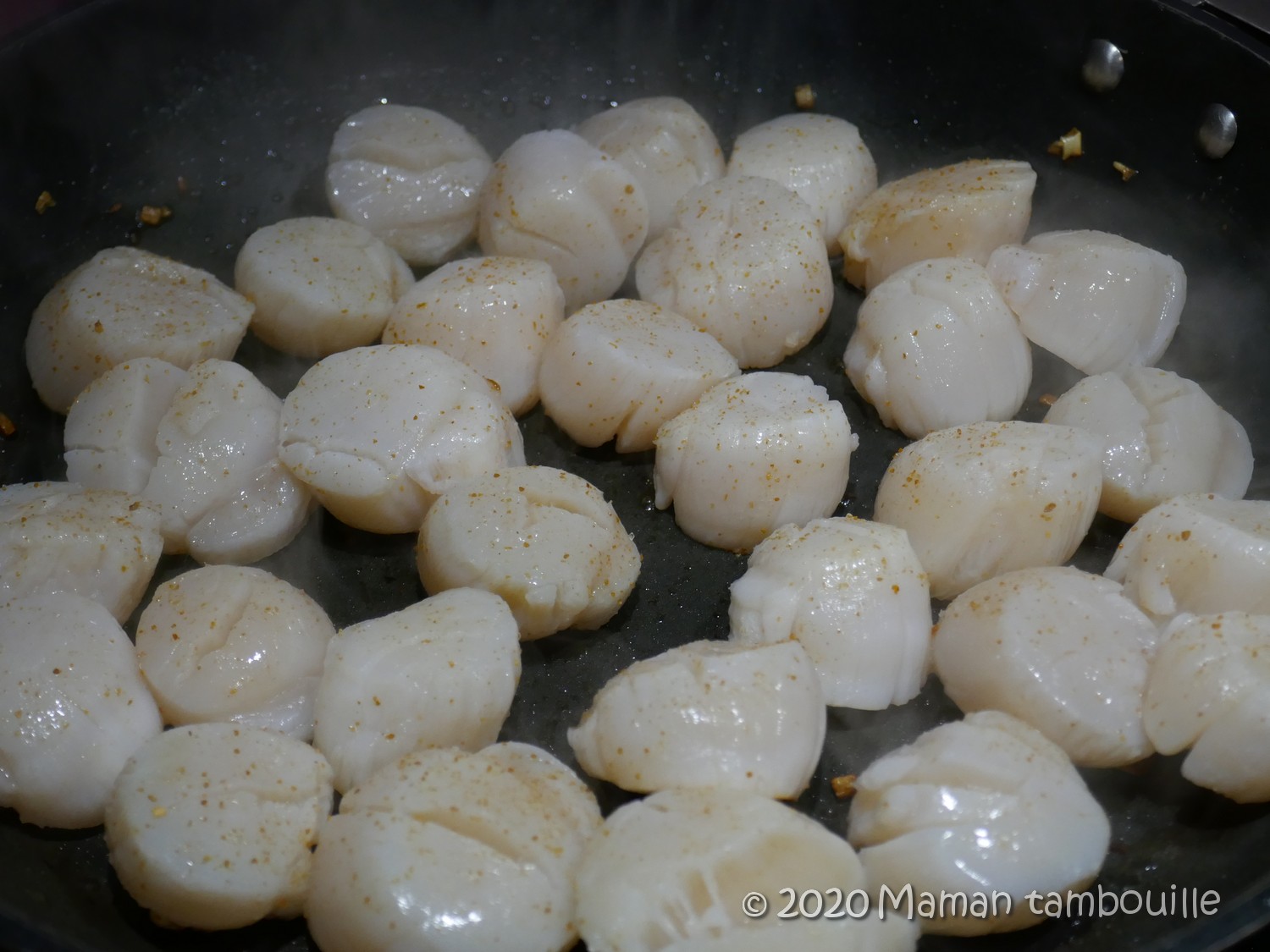 - compter entre 3 et 5 noix de Saint Jacques par personne suivant leur taille … J’ai trouvé de belles noix surgelées de la Baie de Saint-Brieuc