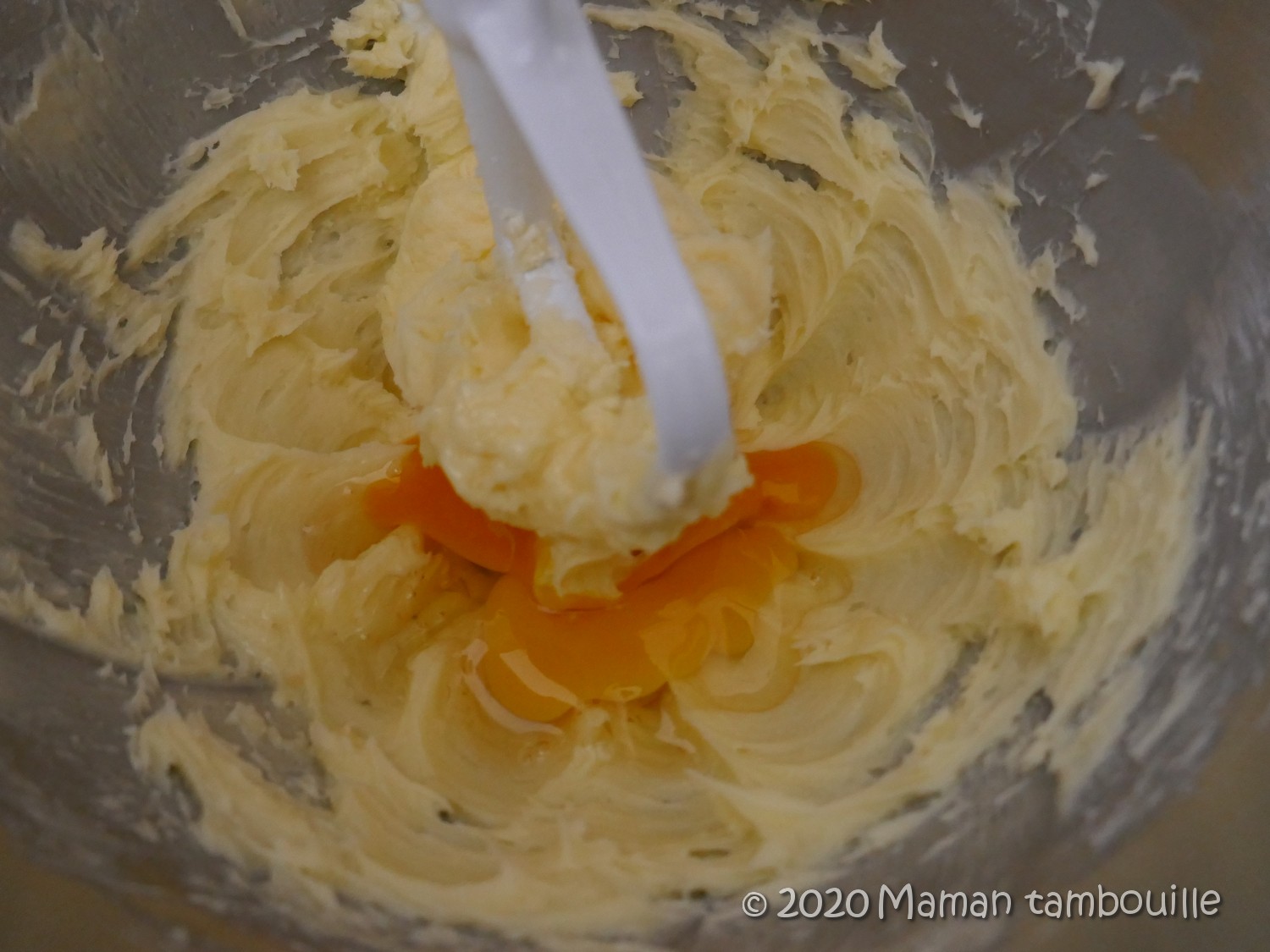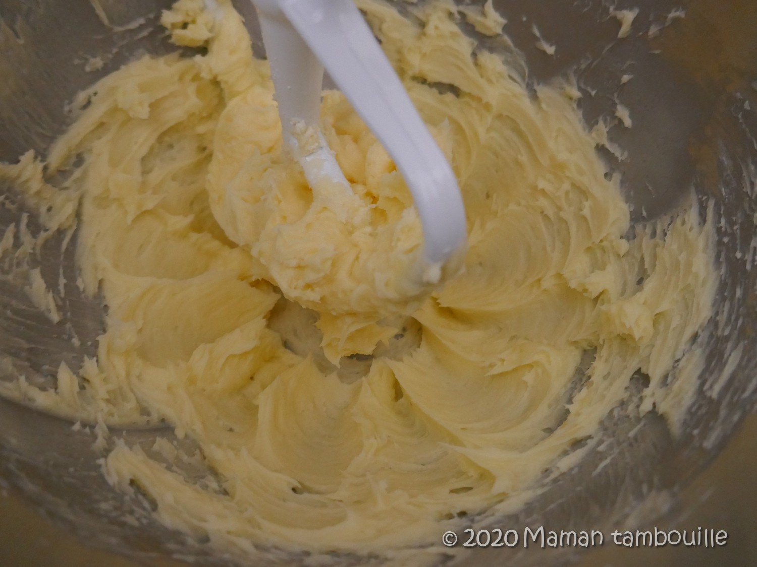 Mettre le beurre dans un robot avec le fouet et le fouetter pour l’assouplir et l’homogénéiser.