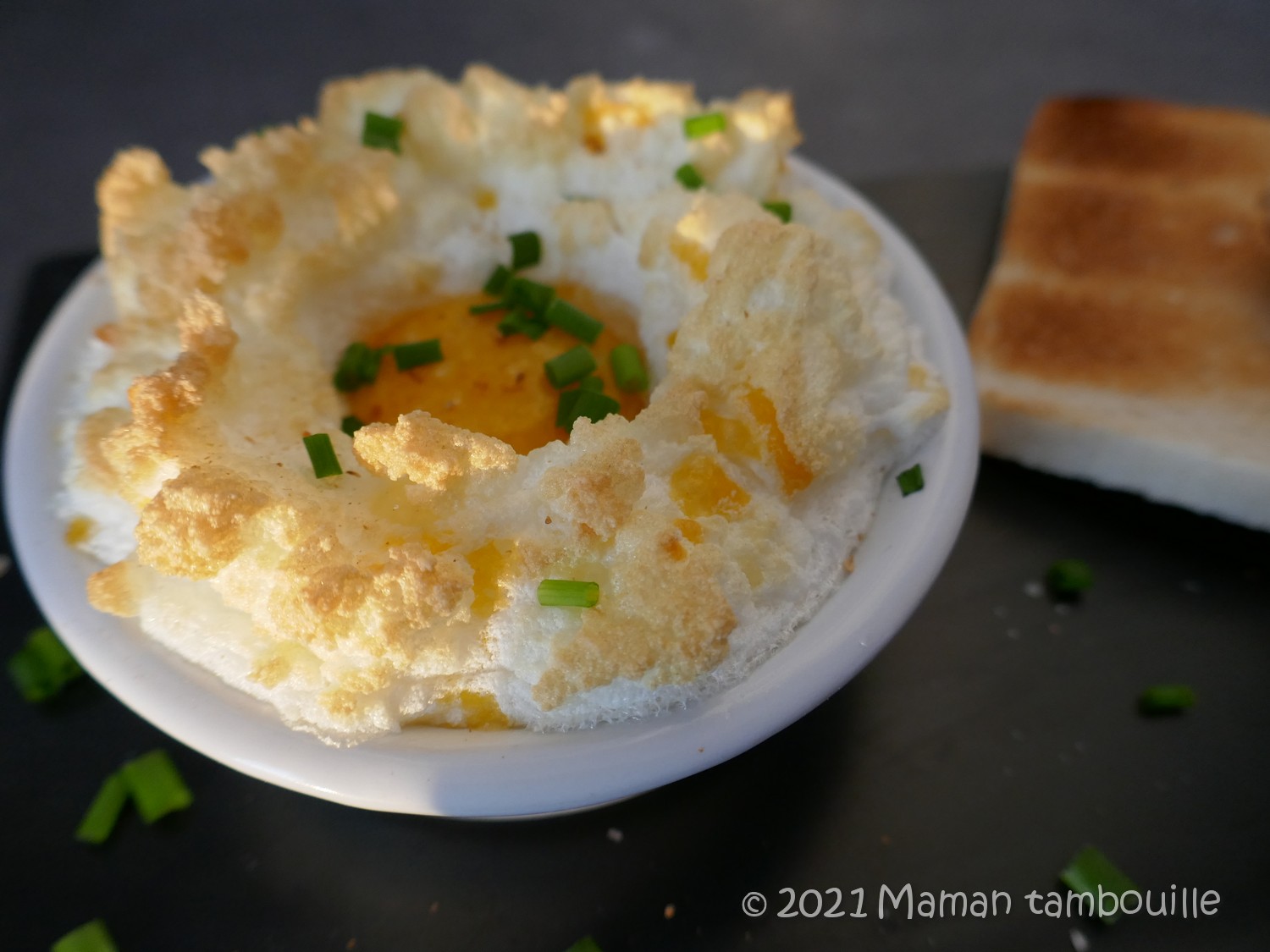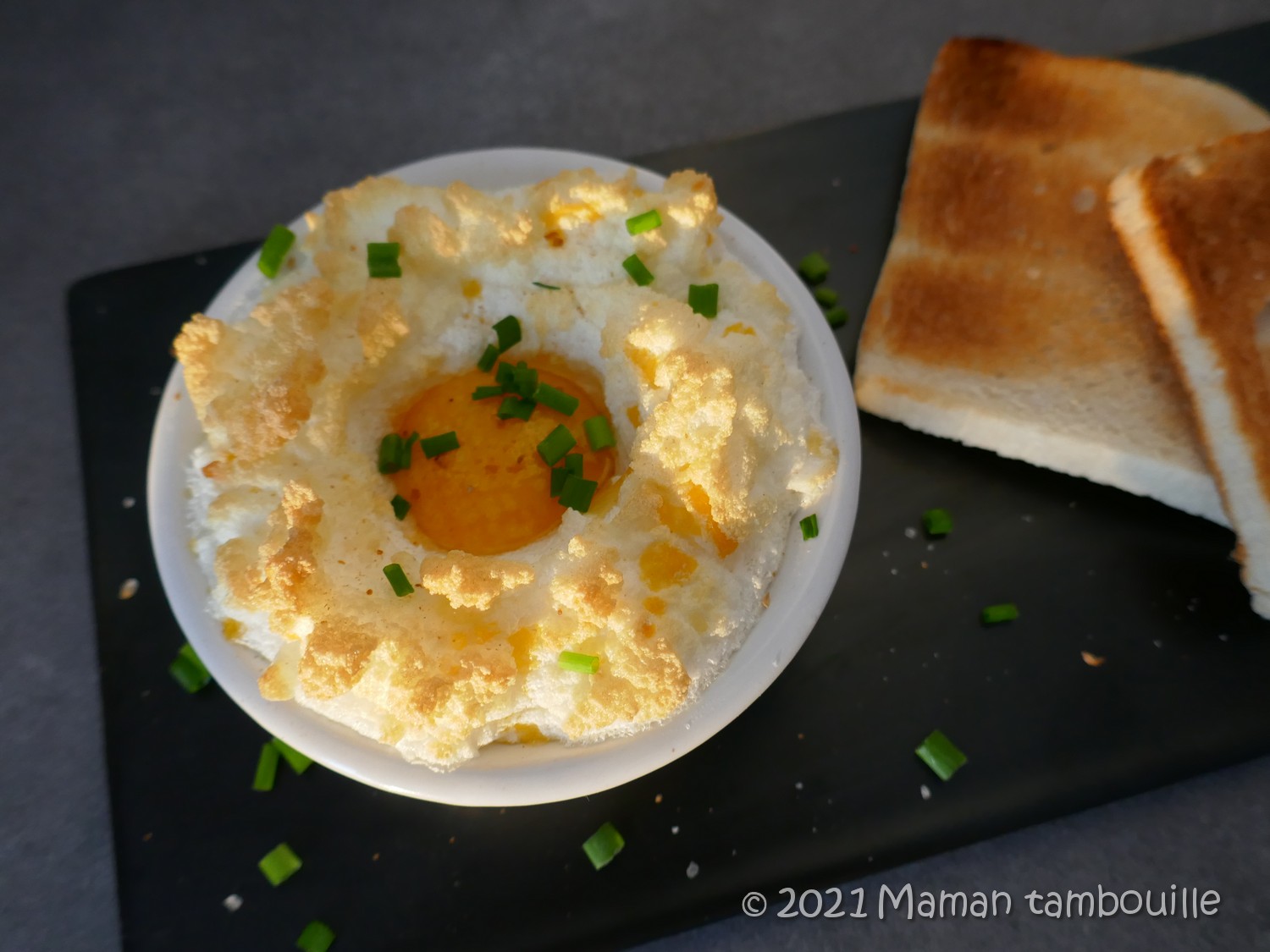 Entre l’oeuf cocotte et le soufflé, voilà un plat facile et rapide à préparer. A servir avec du pain grillé et une salade verte.