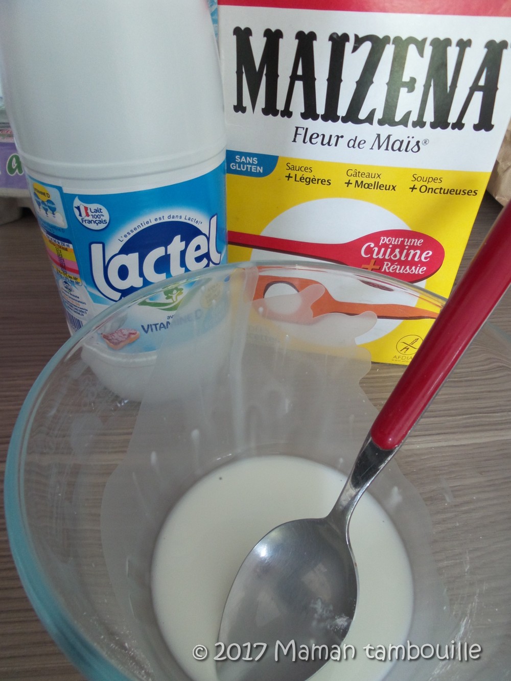 Dans un saladier, mélanger la maizena et le lait.
