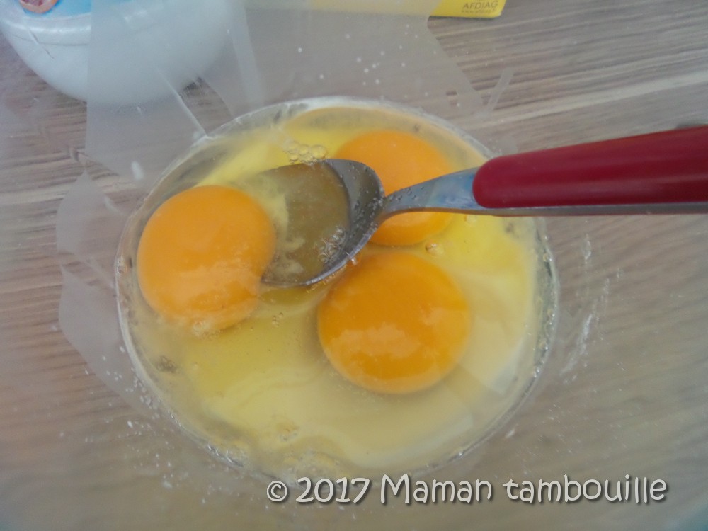 Pour 1 petit bol (j’ai fait plusieurs tournées car il n’est pas possible de préparer beaucoup d’oeufs en une seule fois avec cette technique):