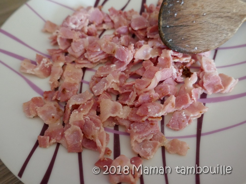 - une dizaine de tranches fines de poitrine fumée (à défaut des petits lardons fumée, du bacon ou encore du jambon blanc)